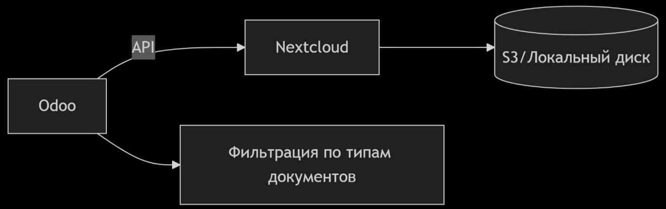 - Все документы привязываются к объектам системы (заказам, инвойсам)