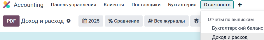 Модуль «Бухгалтерия» -> Отчеты -> Прибыль и убытки