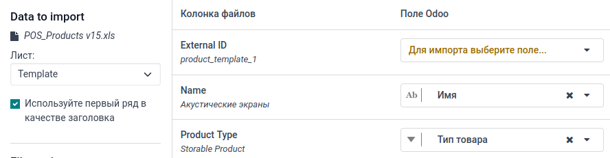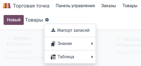 Модуль «Торговая точка» -> Товары -> Товары -> Импорт записей