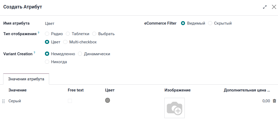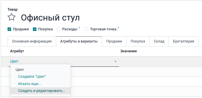 Модуль «Вебсайт» -> eCommerce -> Товары -> Офисный стул