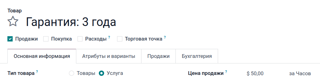 Вы: Да, давайте создадим новый товар «Гарантия», который будет предлагаться как дополнительная опция для кресла. Гарантия будет действовать 3 года и стоить 50 долларов.