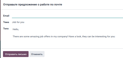 Если вы нажмете «Отправить письмо другу» на главной странице приложения «Рефералы», вы отправите другу все вакансии, доступные в вашей компании.
