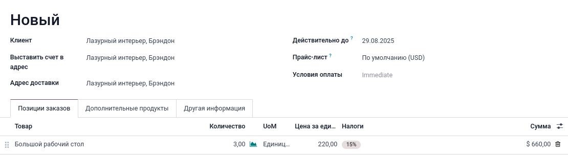 Покупатель: Здравствуйте, это Брэндон из «Лазурного интерьера». Я хотел бы купить три больших стола. Можете отправить мне заказ?