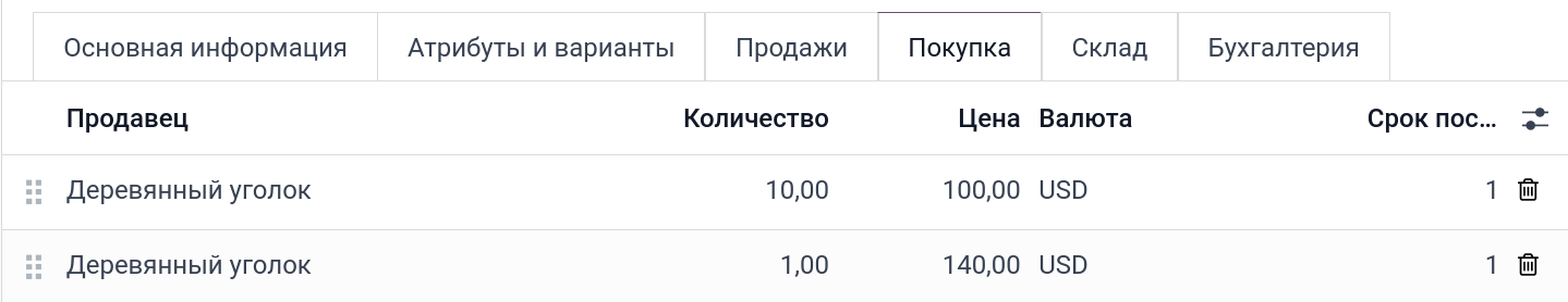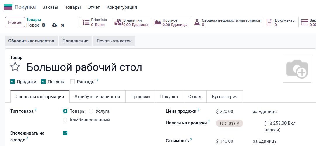 Модуль «Покупка» -> Товары -> Товары -> Новое