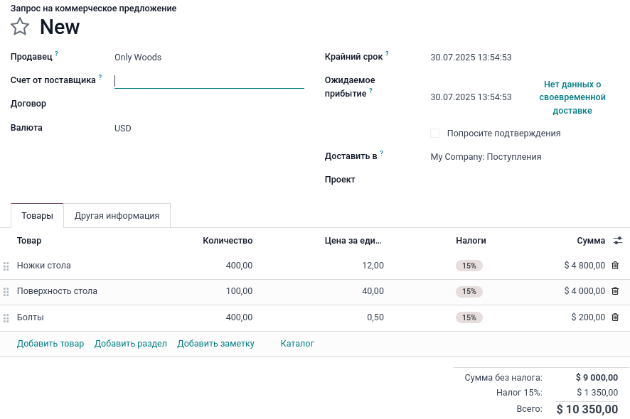 Налоги зависят от страны. В зависимости от установленного бухгалтерского пакета, ваша налоговая ставка может отличаться от указанной в примере.